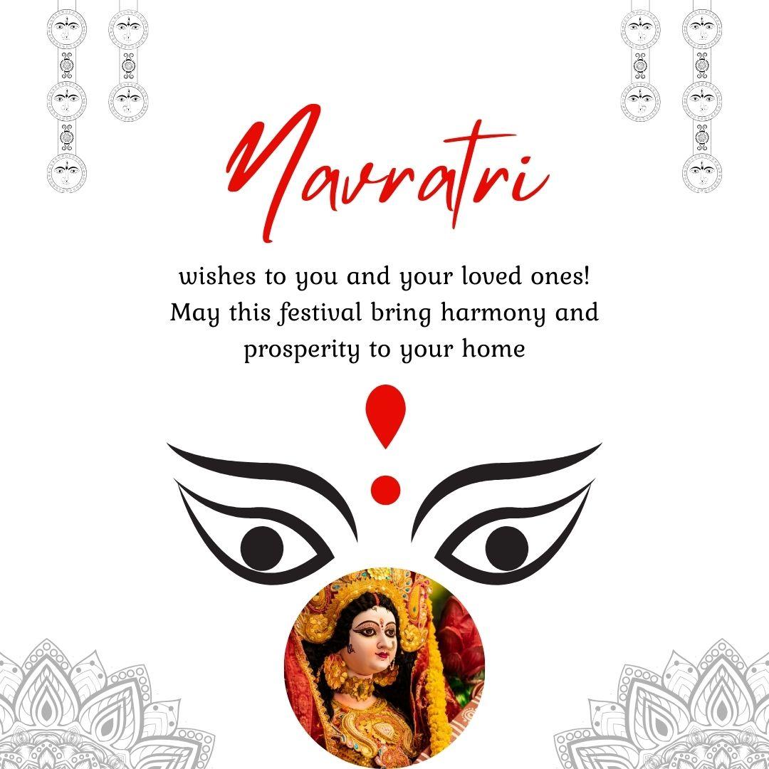 Celebrate this Navratri with stunning wishes images! Download and share these beautiful Navratri greetings to spread joy and blessings with your loved ones. May Maa Durga shower her blessings on you this festive season.